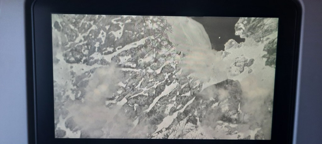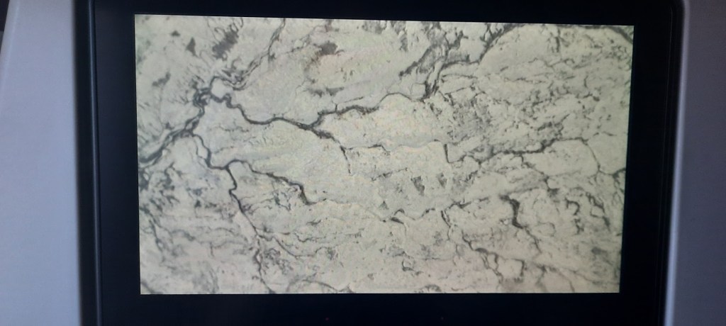 Yesterday, I flew home to Toronto from the Netherlands, after handing in my PhD thesis. The plane had a camera pointing straight down that you could watch via the screens mounted in each seat. We had clear skies coming in over Labrador, and I spent the next two hours staring at the ground ten kilometers below. I normally take a window seat when I fly back, but this time felt like a new way of seeing Canada, a sort of involuntary real-time scroll through Google Earth. These words jumped out at me like popcorn and I thought I would share them.